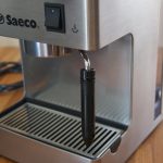 The standard portafilter for this machine is different from regular portafilters, it actually is a key component in making the espresso. Normally the portafilter is just a handle that keeps the basket with the coffee grounds in place. The coffee grounds are packed tightly into the basket so that the machine has to force the water through the dense puck of coffee. This machine however has a pressurized portafilter which means that you don’t have to actually tamp (actually you shouldn’t tamp at all) the coffee grounds and the grounds don’t need to be as consistent as with conventional machines.