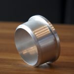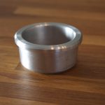 When i was doing some research on using the Mazzer sans hopper i saw quite a few people making adapters to fit clear plastic tubes onto the Mazzers’ grindingchamber. I think it looks somewhat odd, but it did get me thinking, all i needed was something to make the mount smaller in diameter so my tamper wouldn’t leave a gap wide enough for beans to sneak past. The one problem was that the inside of that mount has a double taper, it’s smaller in diameter at the bottom than it is at the top. Basically that means i could forget about finding a standard piece of tubing or piping because those are all straight / untapered.